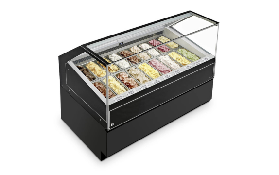 El gran cristal frontal pirolítico calefactado y templado, garantiza una transparencia extrema, libre de condensación, que destaca tu gelato.